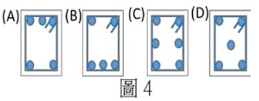 17.圖 4 中何者是固定端配筋斷面(A)圖A (B)圖B (C)圖C (D)圖D