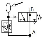 1. 左圖閥件組合後,可作為訊號縮短控制用。箭頭所指處為小型蓄氣筒,是賦予調整訊號的長短,有比較方便的調整設施。 (A)O (B)X