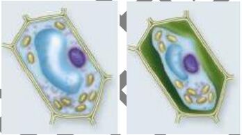 86. 當把一個植物細胞(下圖左)放到某溶液中一段時間,在顯微鏡下觀察到細胞呈現下圖右形態,則此溶液對植物細 胞而言屬於何種溶液?(A)等張 (B)高張 (C)低張 (D)腐蝕性