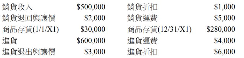 19 甲公司的商品存貨採用定期盤存制度。在 X1 年年底時,和商品進銷相關的會計項目餘額資料,分別列示如下: