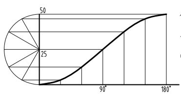 10.下圖為凸輪的位移圖,下列敘述何者為正確(A)為簡諧運動,最大位移量為50 (B)為簡諧運動,最大位移量為25 (C)為等加(減)速度運動,最大位移量為50 (D)為等加(減)速度運動,最大位移量為25