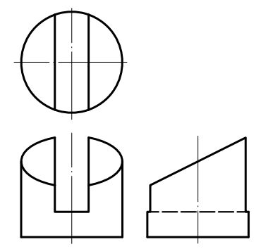 一、1 至10 題請依左圖之正投影視圖繪製等角立體圖(隱藏線需繪出),並請依右上角圖示方向繪製。(每題5分,共50分)(請用鉛筆、尺、橡皮擦作答,否則不記分)1.