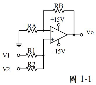 1. 如圖1-1所示電路,若RA=5K,RB=70K,R1=1K,R2=2K,求Vo = ? (A) 5V1+10V2 (B) 10V1+5V2 (C) 10V1+20V2 (D) 20V1+10V2