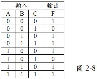8. 布林代數Y=f(A,B,C)其真值表如圖2-8,下列何者是圖2-8的和之積(Product of Sum)的最簡式__________________