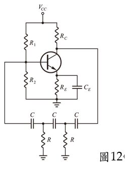 20. 如圖12所示之電路,是哪一種振盪器? (A)考畢子振盪器(B))韋恩電橋振盪器 (C)哈特萊振盪器 (D)相移振盪器。