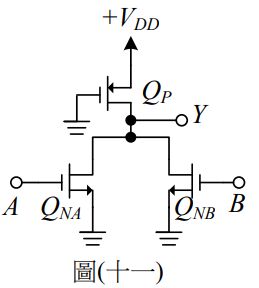 20.如圖(十一)之MOSFET數位電路,此電路實現了何種邏輯閘?
