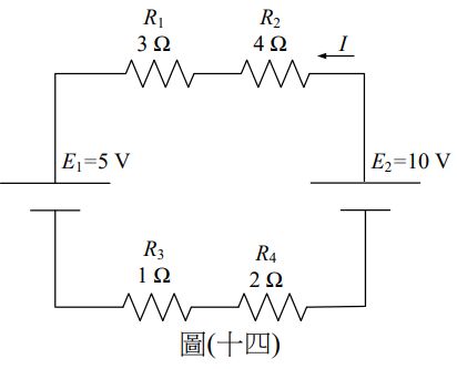 28.如圖(十四)電路所示,試求電流I之值為何?