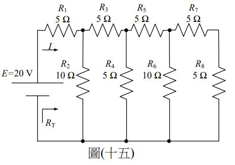 29.如圖(十五)電路所示,試求總電阻RT之值為何?