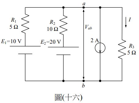 31.如圖(十六)電路所示,試求a,b兩端之電壓Vab為何?