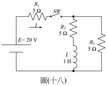 33.如圖(十八)電路所示,當開關閉合瞬間,電流I的值為何?