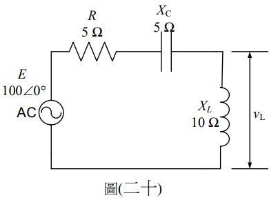 37.一個RLC串聯交流電路如圖(二十)所示,求電感器兩端之電壓為何?