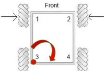 33.如下圖所示,二輪機器人向前往右旋轉,請問左右輪子面向輸出軸的轉向為何?
