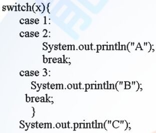 2. 一 Java 程式片段如下,當 x 數值為何時會印出"B"?(A)2(B)0(C)1(D)3。