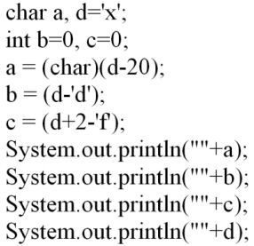72. 執行完下列 Java 語言程式片段後,印出以下那些結果?