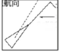 28. AIS信號在雷達螢幕上的符號如下圖,其中實線且轉折表示什麼意義? (A) ARPA追蹤目標對水運動向量線 (B) ARPA追蹤目標對地運動向量線 (C) AIS接收目標傳送之運動向量線 (D) AIS傳送給目標之運動向量線
