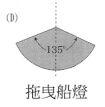 11 法定燈標之照射範圍,下列各圖何者有誤?圖示以正北方為 船艏,且光波線以船中心線作準。(A) (B) (C) (D)