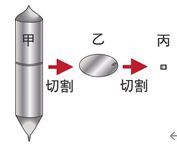 10.( )已知IC的生產過程中,會經過附圖的三種狀態,其中乙的名稱為何?(A)晶棒 (B)晶片 (C)晶圓 (D)晶體