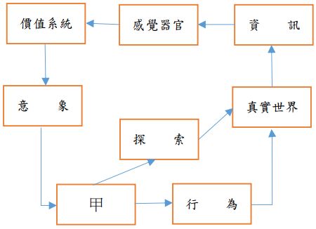 4. 地理學的人地傳統進入環境識覺研究主題後, 地理學家逐漸發展出一套觀念架構如圖 1 所示 ,圖中的「甲」處應填入下列何者? (A)環境 (B)決策 (C)評價 (D)偏好