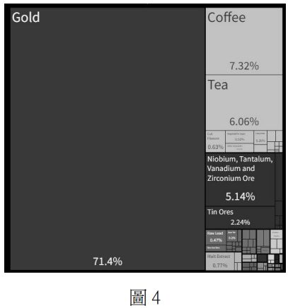 47.圖 4 是 2020 年某個非洲國家的出口商品結構。這個國家最可能為下列何者? (A)Ghana (B)Rwanda (C)Seychelles (D)Zambia