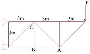 36. 如圖所示,桁架受力P=20 N,則桿件AB所承受的應力為多少N? (A)0 (B)40 (C)60 (D)80