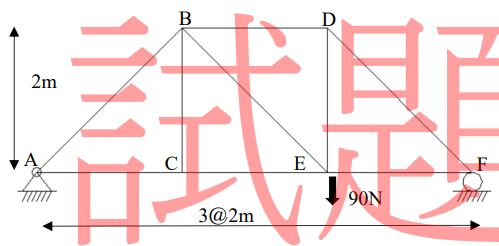 44. 如圖所示,桁架之桿件BD之應力為多少N? (A)60 (B)72 (C)90 (D)120