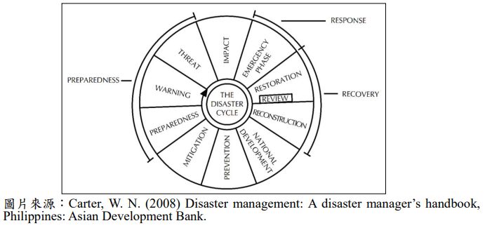 三、災害管理是一個連續且各階段相互關聯的循環,請運用災害管理循環概念圖,說明具有韌性的社區應如何因應災害風險。