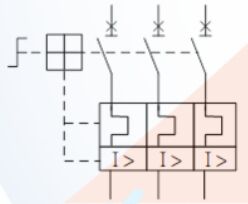 25. 如下圖所示之歐規斷路器,若其規格為 3P 220VAC 25KA 2.5~4A 過載可調,瞬跳值為 10 倍以上, 下列有關該器具之功能敘述何者錯誤?