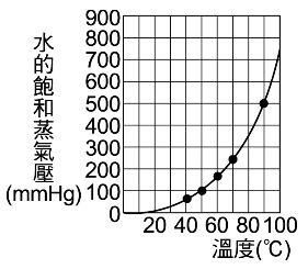 12. 在一附有活塞的密閉容器中,置入4.0莫耳He(g)和1.0莫耳H2O(g),使成90 ℃、1 atm之氣體狀態。此時若在定壓下將容器慢慢冷卻,則依下圖推測欲使H2O(g)開始液化的溫度約為多少℃?