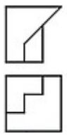 5. 已知等角體圖,其正確的俯視及前視圖 (第三角投影法) 應為: (A) (B) (C) (D)