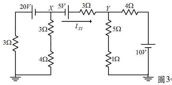 20.圖3電路中的IXY為何? (A)-2 (B)2 (C)-3 (D)3 A。