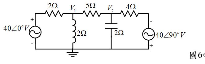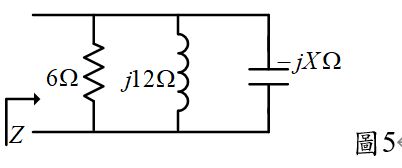 25.如圖5所示之RLC並聯電路,若已知其功因為領先,則X為多少? (A)4 (B)6 (C)7 (D)12。