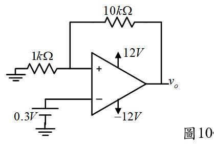 43.圖10所示之電路,若運算放大器的特性是理想的,則約vo為 (A)-12 (B)12 (C)-3.3 (D)3.3 V。