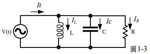 8. 如圖1-3 所示之交流穩態電路,已知各支路電流有效值為 IL = 24 A、 IR = 24 A、 IC = 6 A, 則電流有效值 It為何?