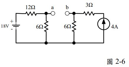 7. 如圖2-6所示,請問ab兩端的戴維寧等效電阻Rth為何? _____________