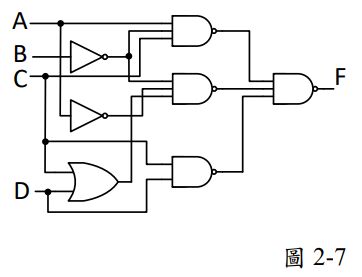 8. 如圖2-7所示,F = f (A,B,C,D),求輸出F最簡的積之和(Sum of Product)方程式___________ 。