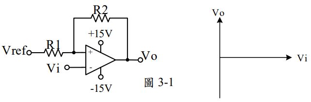1. 如圖 3-1,請畫出 Vi 與 Vo 的轉換曲線 並標示 VTH 和 VTL。