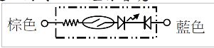 13. 有個二線式附LED之磁簧開關的內部迴路如下,何者在感測到物件時,感測器會導通,同時LED燈亦會亮。 (A) (B) (C) (D)