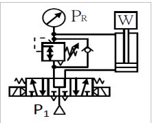 15. 如圖為氣壓缸(ψ50×20×300)之平衡迴路,若氣源壓力P1=6l。 、負載W=50kgf,則可以使負載物停止於任意位置,PR壓力為