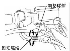 12. 有關機器腳踏車之維修手冊記載如圖所示,下列敘述何者正確? (A)調整煞車間隙鬆緊 (B)調整煞車游隙 (C)調整節流閥游隙 (D)調整拉桿游隙。