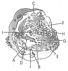 (A)已、壬、癸、H、I中皆含有DNA (B)壬、C、G皆由雙層膜構成 (C)消化細胞可分泌酵素,D構造會特別發達 (D)壬構造動物細胞沒有,但可見於植物體所有細胞