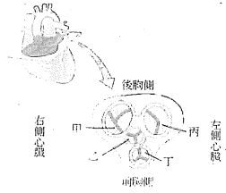 6.右附圖為心臟及其連接管的切面圈,甲乙丙丁均為瓣膜,下列敘述何者正確? (A)心房及心室舒張時,甲與丙關閉 (B)心房收縮及心室舒張時,甲與乙會開啟 (C)心房舒張及心室收縮時,乙與丁會開啟(D)流經丙與丁感的血液屬於減氧血