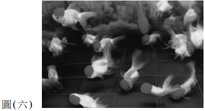 47. 阿村自己製作針孔相機,拍攝圖 ( 十二 ) 的畫面,依照正常的光學現象,當光線透過小孔到膠片中投影成像,且沒有經過任何人為處理調整,他拍攝出來哪一個畫面為正常在膠片的成像? (A) (B) (C) (D)