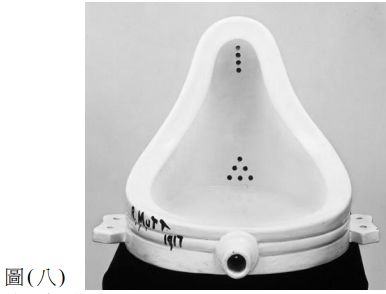 39. 馬歇爾․杜象(Marcel Duchamp)以圖(八)噴泉(Fountain)作品來解釋藝術定義上的衝突, 這個作品中,杜象用什麼樣的創作手法來呈現藝術? (A) 利用大理石材質重塑庶民使用的小便斗 (B) 將原來公園中的噴泉改造為小便斗造型 (C) 將小便斗復刻多件館藏於大英博物館 (D) 選擇一個小便斗在其上面簽名