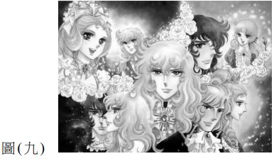 40. 知名日本漫畫家池田理代子作品《凡爾賽玫瑰》圖(九)大量運用了法國歷史中纖巧、精美、 浮華、繁瑣,反映出輕浮、安逸的貴族生活風格,此一描述藝術風格時期為下列何者? (A) 包浩斯藝術 (B) 洛可可藝術 (C) 哥德藝術 (D) 文藝復興時期藝術