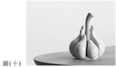 41. 圖(十)為依照生物或是植物造型作為外型創作的範例,此種創作方式也呼應丹尼斯 狄德羅 (Denis Diterot)說「凡是自然所造出來的東西沒有不正確的...」,丹尼斯 狄德羅提到的此 種藝術創作為何種起源論? (A) 藝術意涵說 (B) 藝術聯想說 (C) 藝術自然說 (D) 藝術模仿說