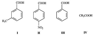 18 請問下列有機化合物的酸性從小至大的排列順序為何? (A) II, III, I, IV (B) I, III, II, IV (C) IV, I, III, II (D) IV, II, III, I