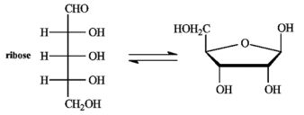 25 請問下列化學反應平衡中的環狀結構產物的正確名稱為何? (A) α-L-呋喃核糖(ribofuranose) (B) β-D-呋喃核糖(ribofuranose) (C) α-L-吡喃核糖(ribopyranose) (D) β-D-吡喃核糖(ribopyranose)