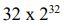 8微處理器具有64條資料排線(data bus)和32條位址排線(address bus) ,給定一個字元(word)長度為32bits,使用字元定址(word addressable),其記憶體最大能儲存多少個位元?(A) (B) 32 x (C)(D)