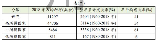 10. 表(二)是依 2018 年人均所得與經濟成長率所分類的國家類型。根據表中的資料,核心 與邊陲的互動關係最接近何者?