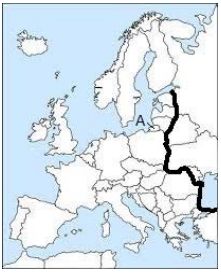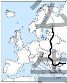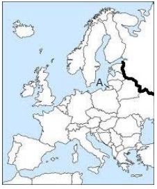 12. 下列哪一張地圖上的粗線位置最符合目前北約勢力在歐陸本土的最東界(圖中的 A 處屬於俄羅斯領土)? (A) (B) (C) (D)